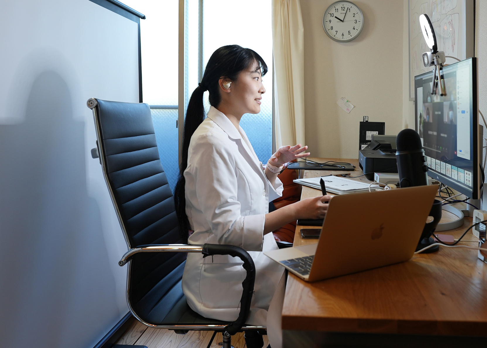 オンラインの授業のために、外付けカメラ、照明、専用マイク、イヤホン、ペンタブ、PC2台、ディスプレイ、スクリーンなど機材を駆使して挑みました。今後のオンライン服薬指導にも使える経験ができました。